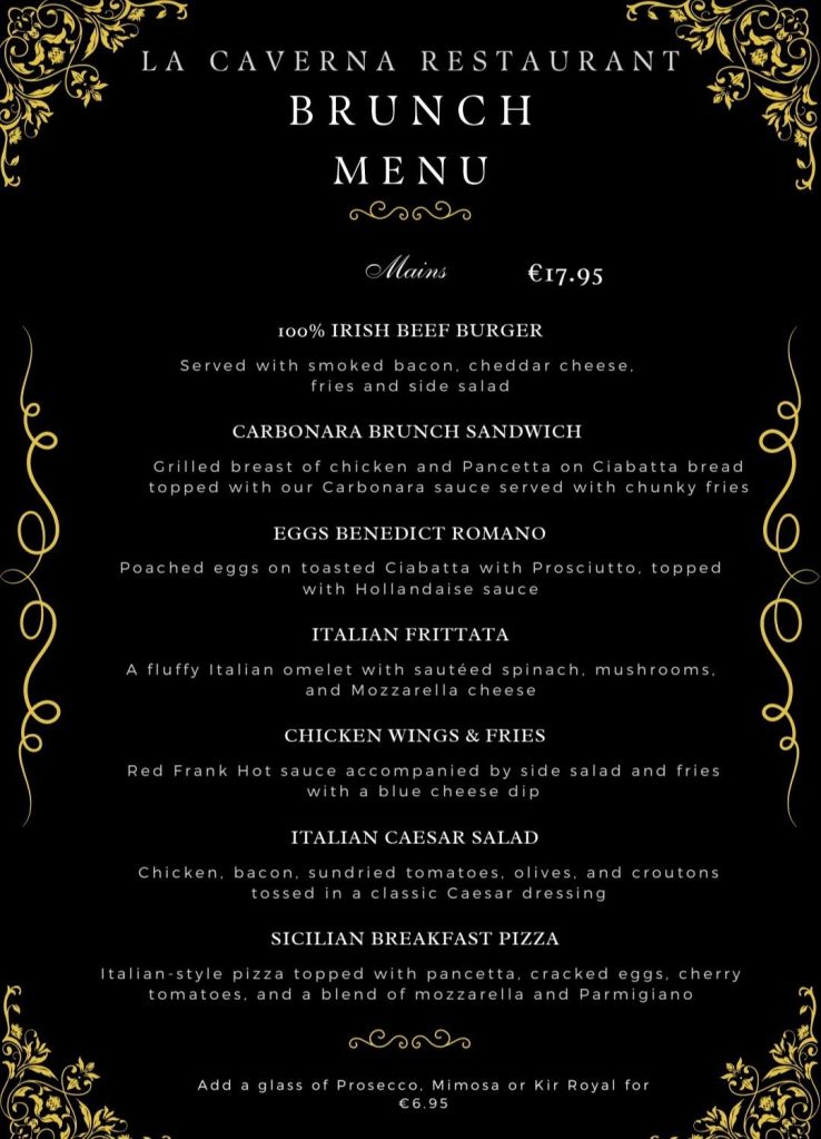 Drinks not included, La Caverna will be offering their selection of beer, cocktails, wine, coffee/tea for individual purchase.